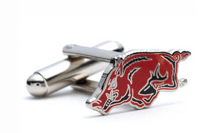 The official logo of the University of Arkansas Razorbacks. Enamel finish cufflinks on a nickel plated backing.